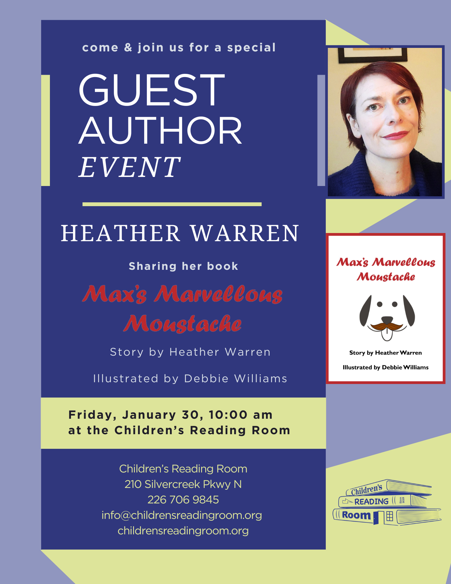 She will reading her book with us at Story and Craft Time on Thursday March 6th and Friday March 7th at 11:00 AM. Lisa Browning will be supplying the materials for the craft we are doing with the book.